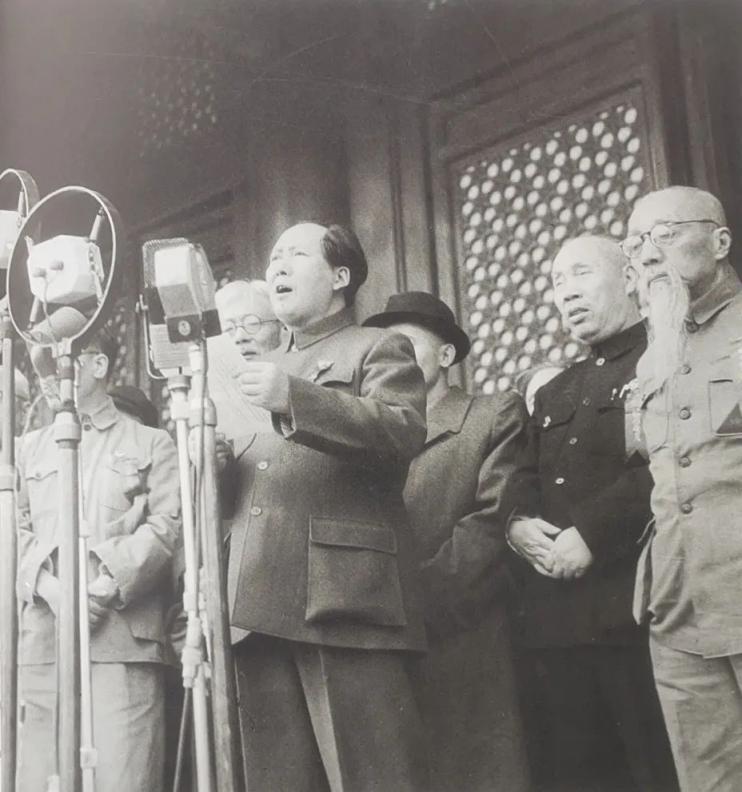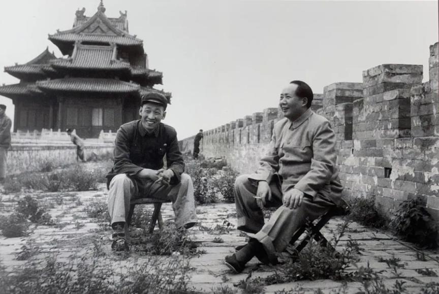 毛泽东在故宫城墙上远眺