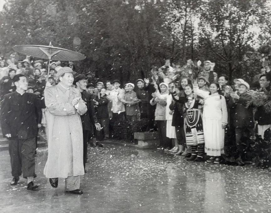 毛泽东在广西南宁参加群众游园大会