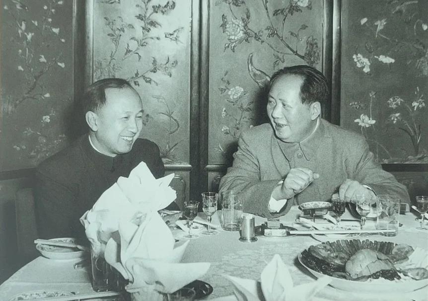 毛泽东和物理学家钱学森在宴会上