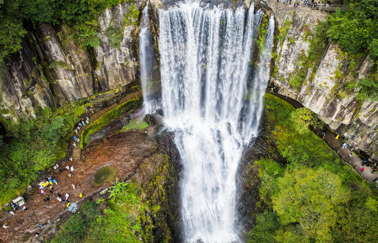 从丽水赶来的李泽汉小朋友今天和爸爸妈妈、妹妹一起享受了免票入园,他说:“入园免了门票。景区环境特别好,空气也新鲜,看到瀑布的时候特别震撼,感觉太壮观了!”
